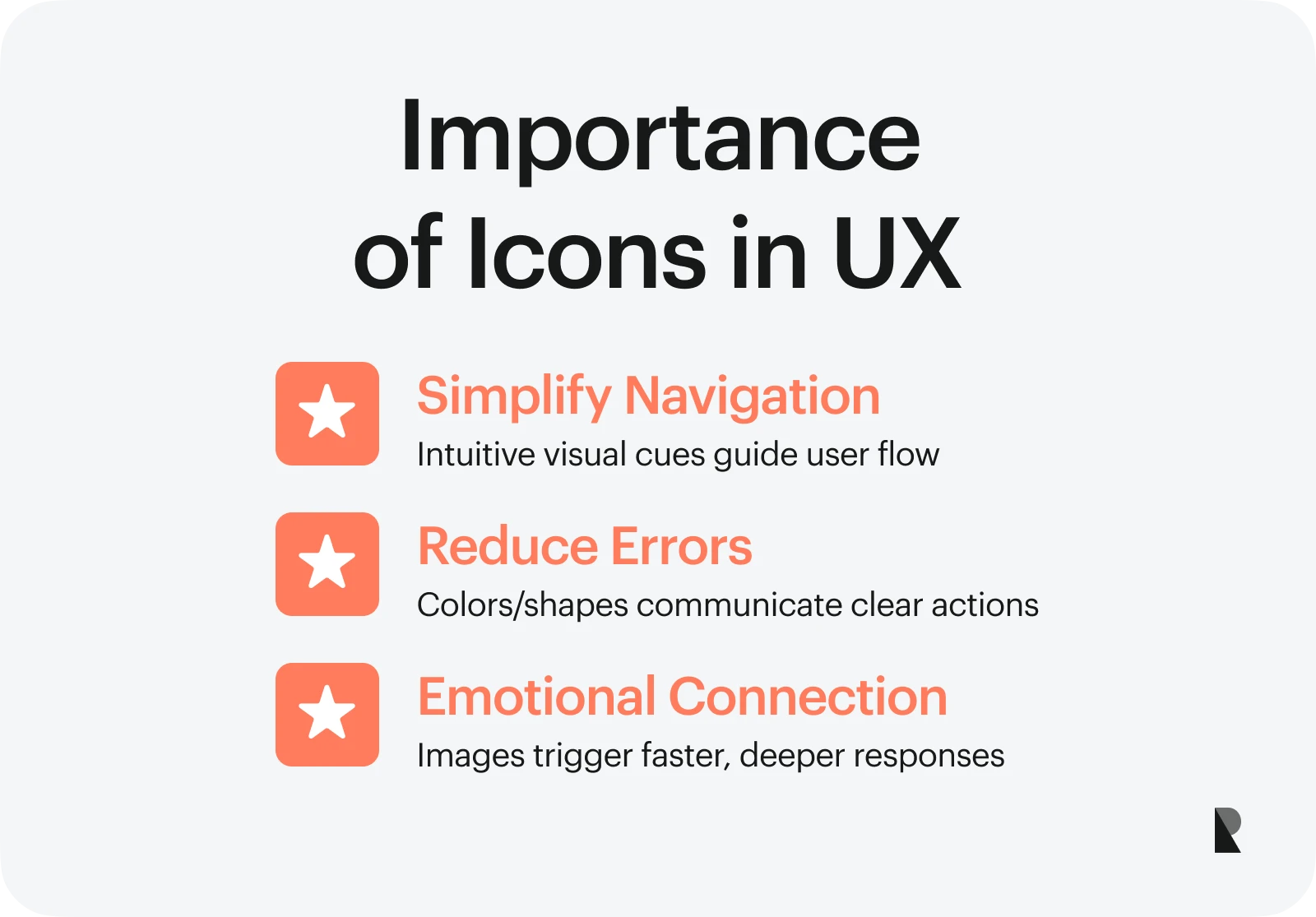 Think of icons as UX shortcuts that signal to our brains and connect to our hearts. Our brains process images faster than text, and icons tap into emotional triggers and cultural associations to guide behavior.