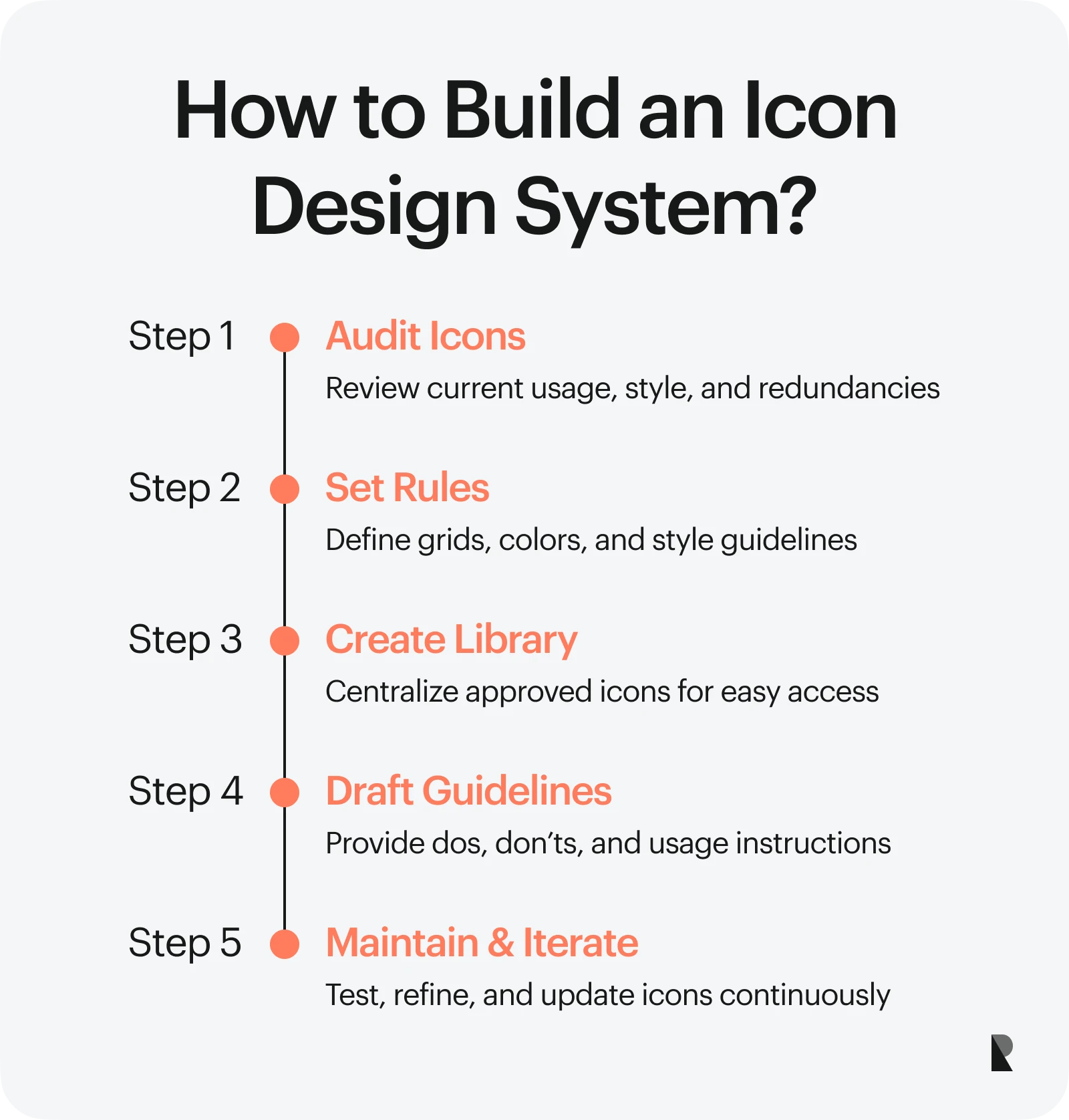 There is no single process for building an icon design system, but here are some fundamental steps to consider before hiring a design system company.