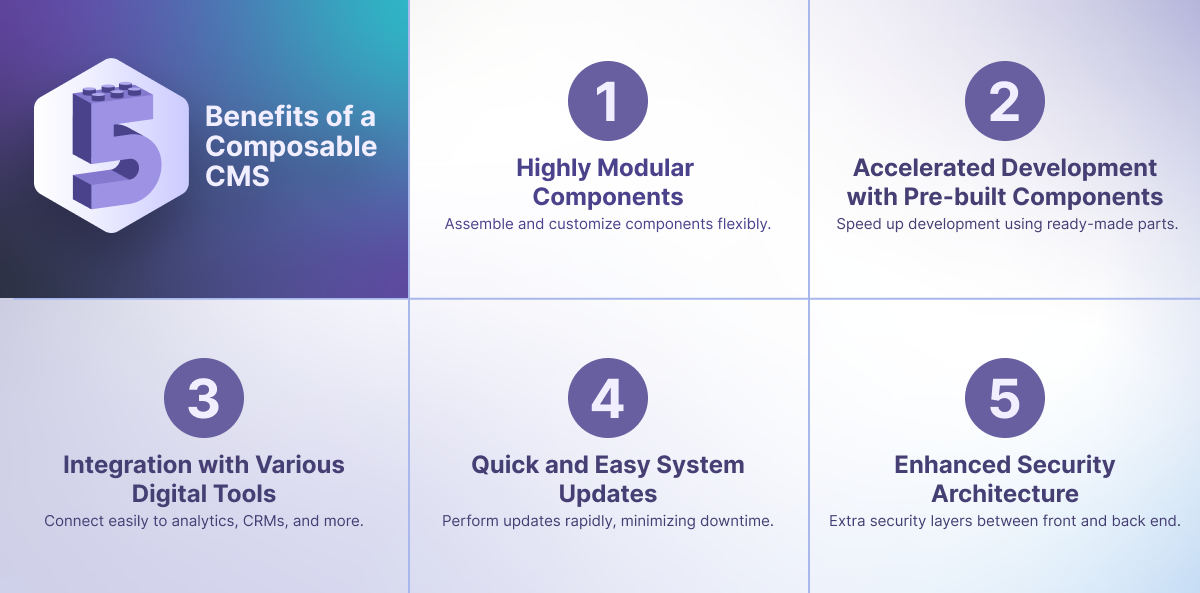 This approach directly supports business agility and long-term scalability, making it a strategic choice for digital growth. Below are the key benefits of using a composable CMS for businesses today.